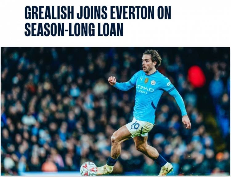 曼城官方:格拉利什25/26赛季租借加盟埃弗顿,祝愿他一切顺利